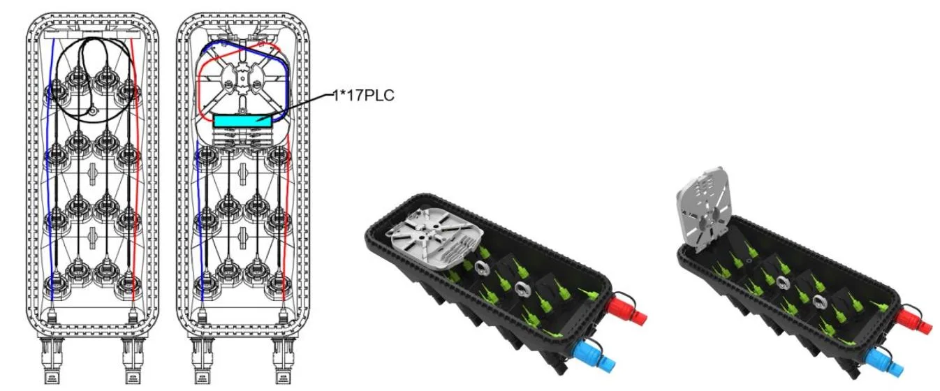 5. O interior está equipado com divisor de 1x2 FBT+ 1x16 divisor de plc ou divisor 1x17 PLC.