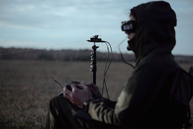 O sistema de transmissão de fibra óptica permite feeds de vídeo seguros e em tempo real em ambiente de alta interferência, com a transmissão varia de 3 a 30 km-ideal para operações de curto e longo alcance. Consiste em três componentes principais: o carretel de fibra, a unidade de ar e a unidade de terra.